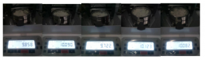 2. 將防風(fēng)盤(pán)、支架、樣品盤(pán)一一裝好,接通電源,按下開(kāi)機(jī)鍵,顯示屏進(jìn)入開(kāi)機(jī)界面,首先按去皮鍵減去樣品盤(pán)重量,后將100g砝碼放入托盤(pán)進(jìn)行校準(zhǔn);