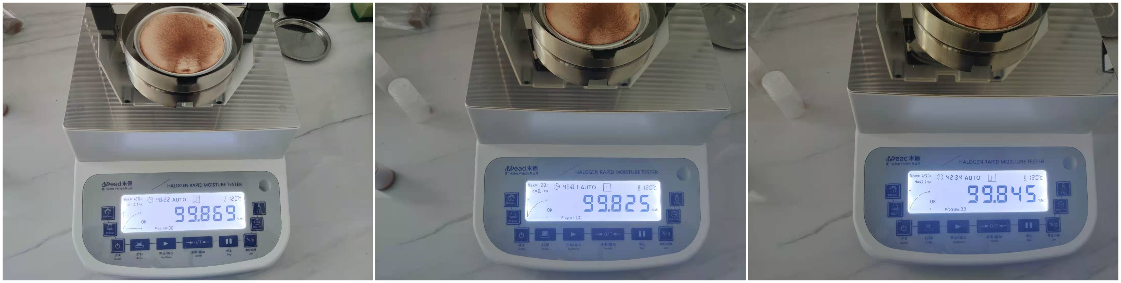 測(cè)試儀器:米德QL-100D固含量檢測(cè)儀(稱重精度0.0001g,水分解析0.001%)