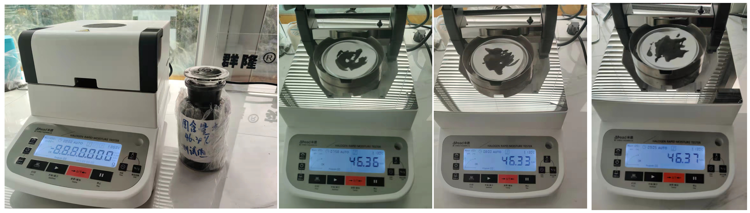 測試儀器:米德QL-720D(稱重精度0.001g,水分解析0.01%)