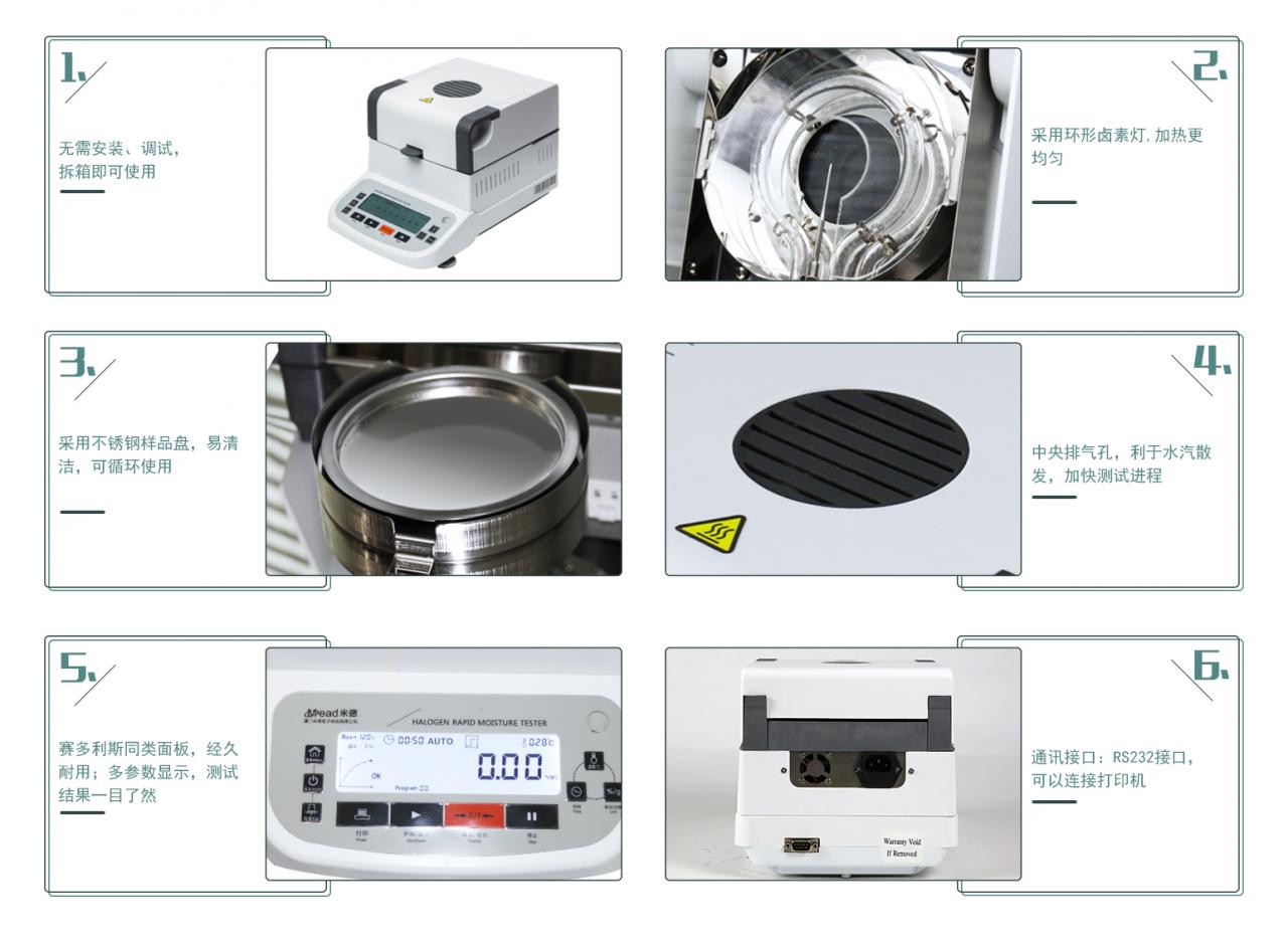 1.代替國標(biāo)烘箱法,用途非常廣泛、適合各行業(yè)的水分測定;