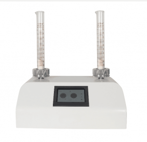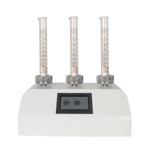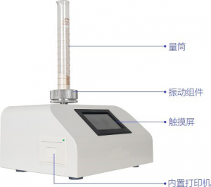 將定量的粉末置于量筒中,在保持顆粒原始形態(tài)下,通過振動裝置均勻往復的上下直線運動,使顆粒間隙趨于一極限值,直到粉末的體積不再減小為止。粉末的質(zhì)量除以振實后的體積,得到的就是樣品的振實密度。