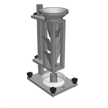1、上部組合漏斗:由兩個不銹鋼圓錐形漏斗裝配而成,其間一段圓柱隔開,并放入一個孔徑為1.18mm的不銹鋼篩網(wǎng)。