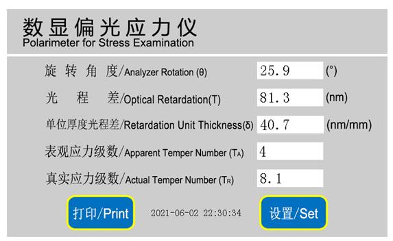 • 五組數(shù)據(jù)直觀顯示:應(yīng)用彩色5英寸液晶顯示屏,同時(shí)顯示測(cè)量角度值、光程差數(shù)值、平均厚度光程差(應(yīng)力值)、表觀應(yīng)力級(jí)數(shù)和真實(shí)應(yīng)力級(jí)數(shù),滿足不同行業(yè)的測(cè)量需求。