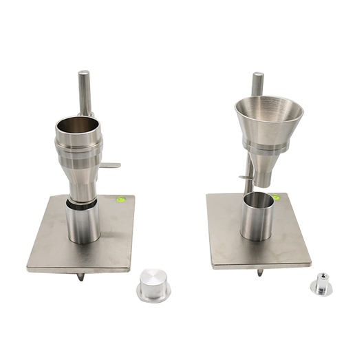 (2)將擋料板插入漏斗中,將100+5ml試樣倒入漏斗中。